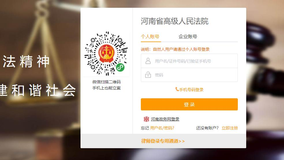 1. 登录河南法院诉讼服务网,点击网上立案,登录账号,如下图所示: